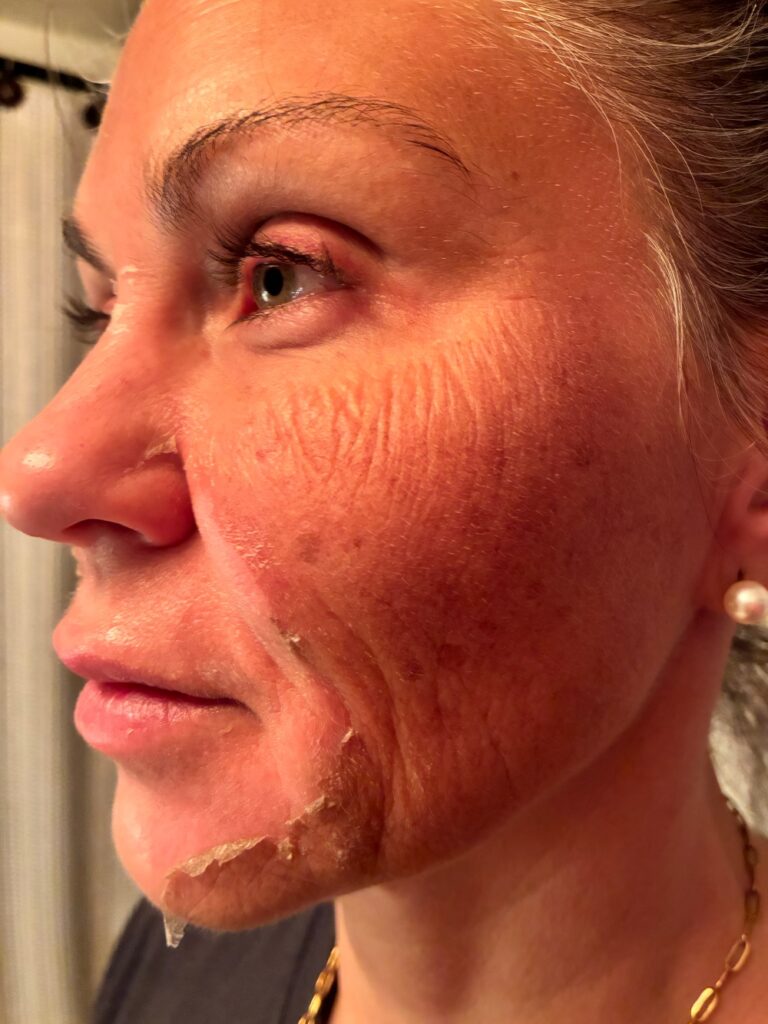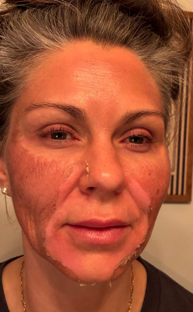 For most, by day 7, the “sloughing” of skin has stopped or is greatly minimized. A slight redness can remain. What is no longer hidden under the dead, dry layers is the beautiful, glowing skin.