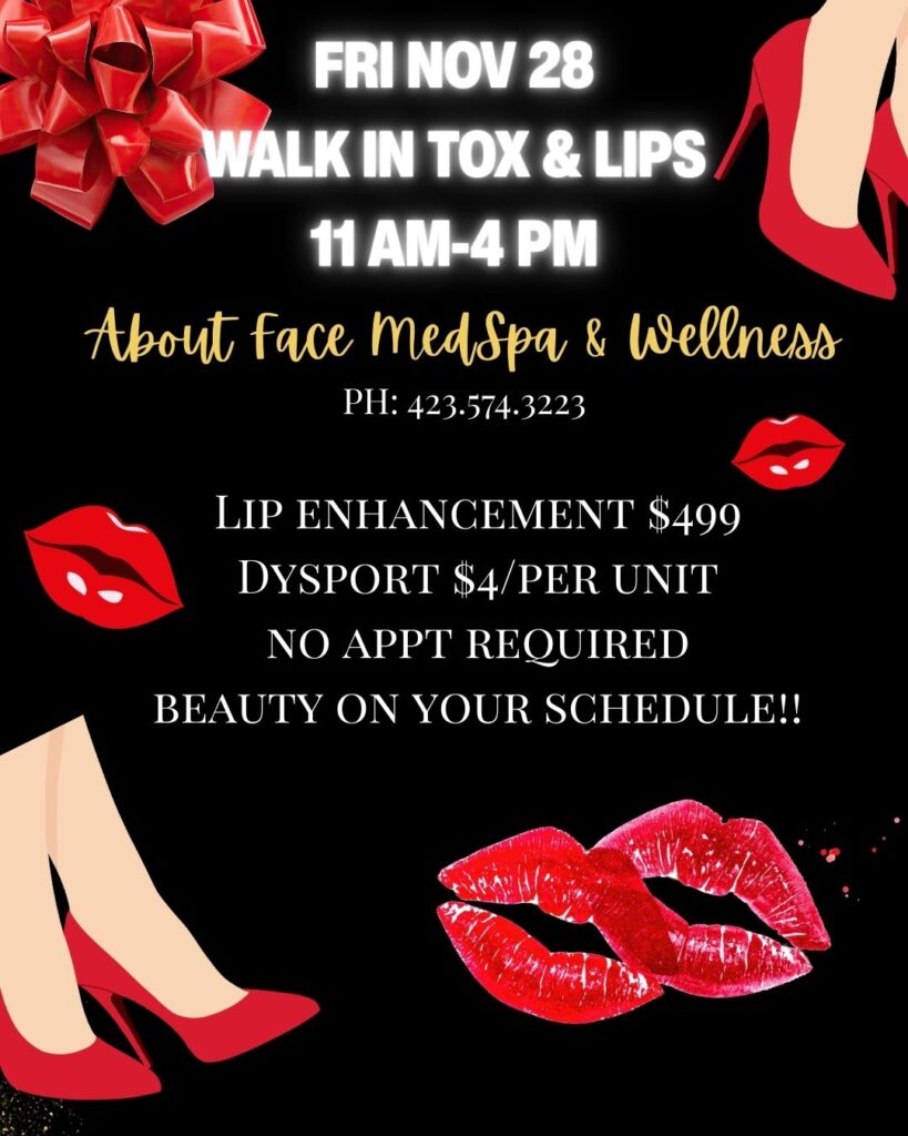 Aesthetics by Rhiana specials are available immediately. About Face MedSpa & Wellness specials are available from Monday, November 24 through Friday, November 28.